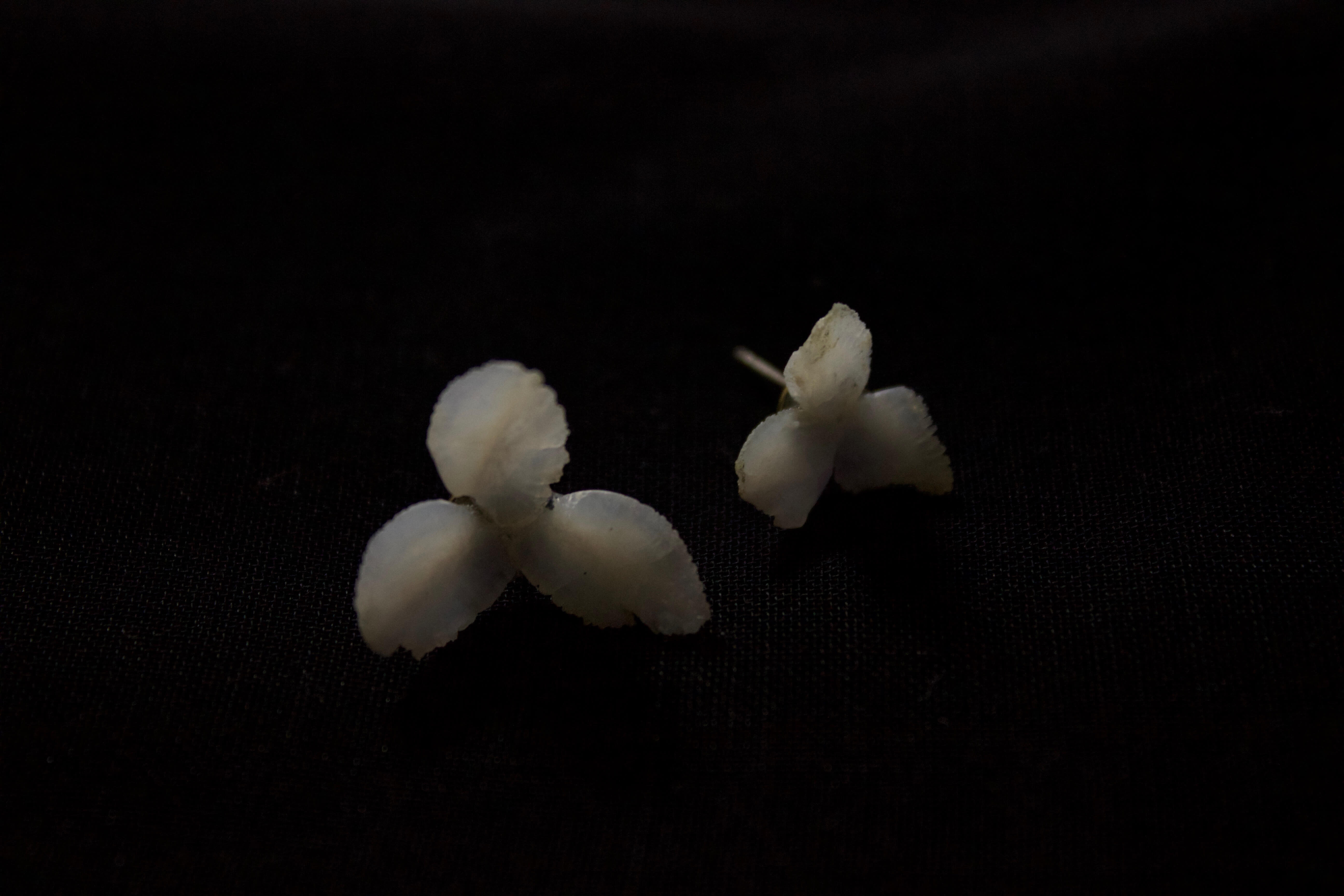 不安定さをテーマに、魚の耳石を使用したアクセサリー
