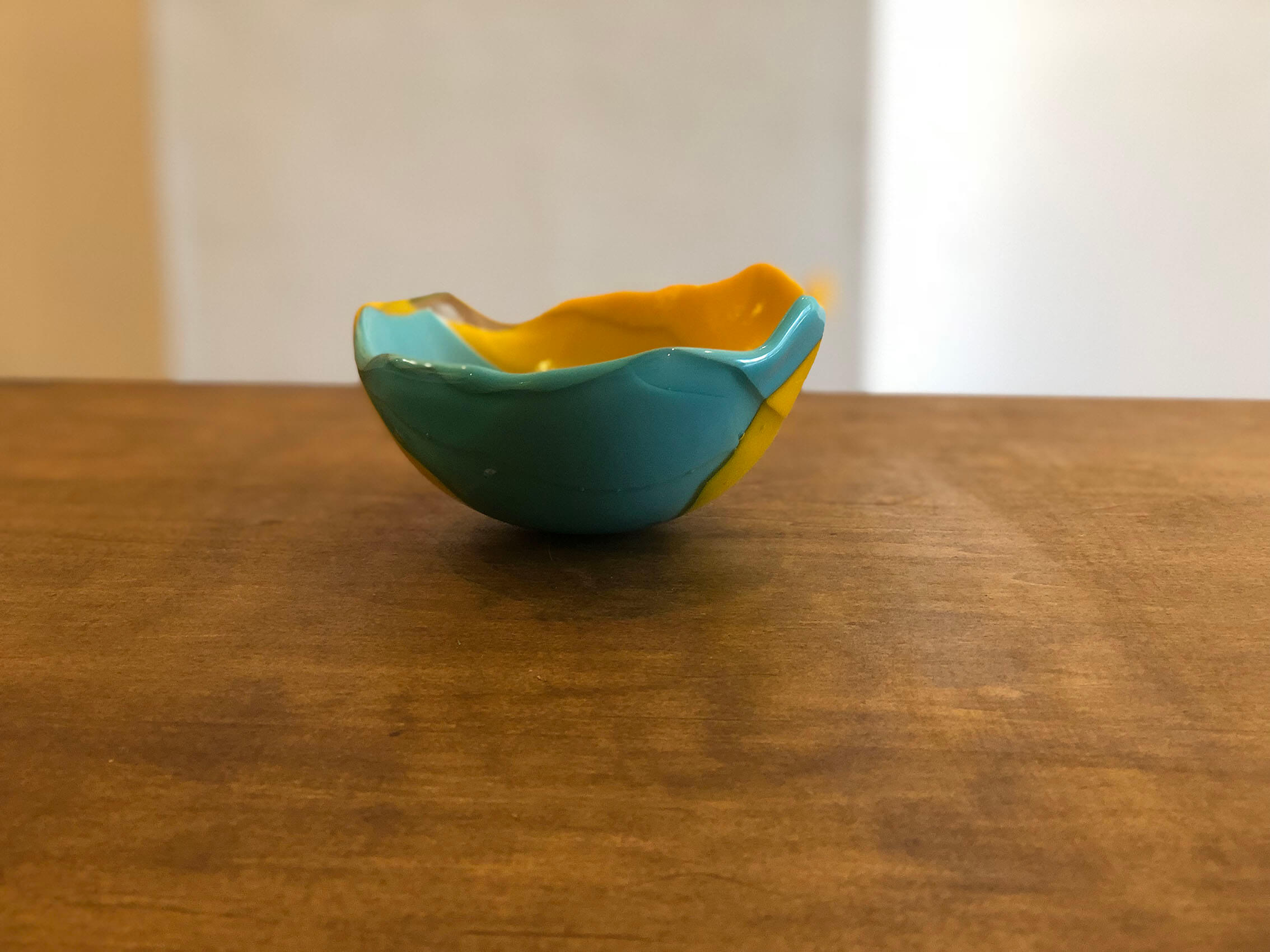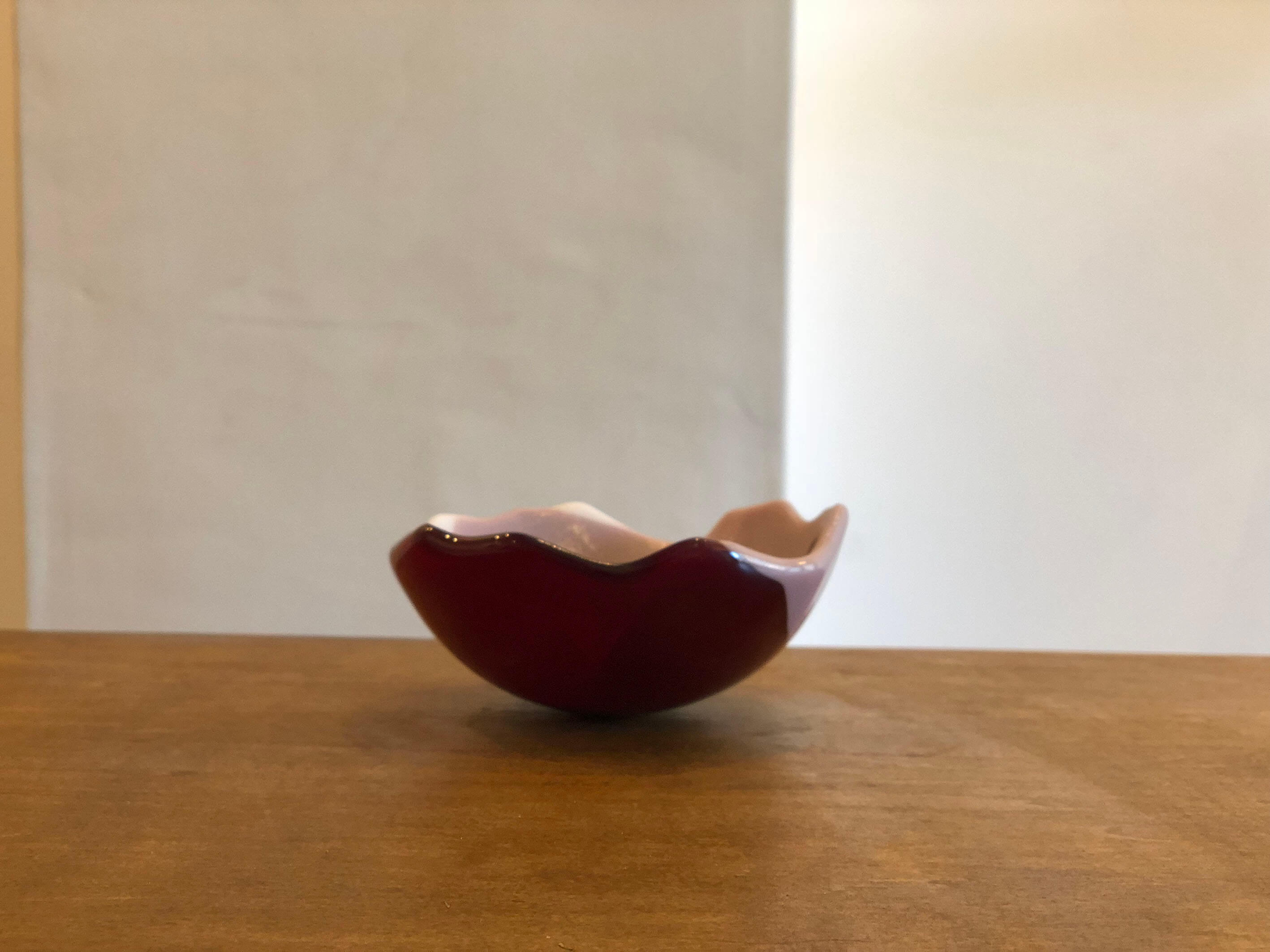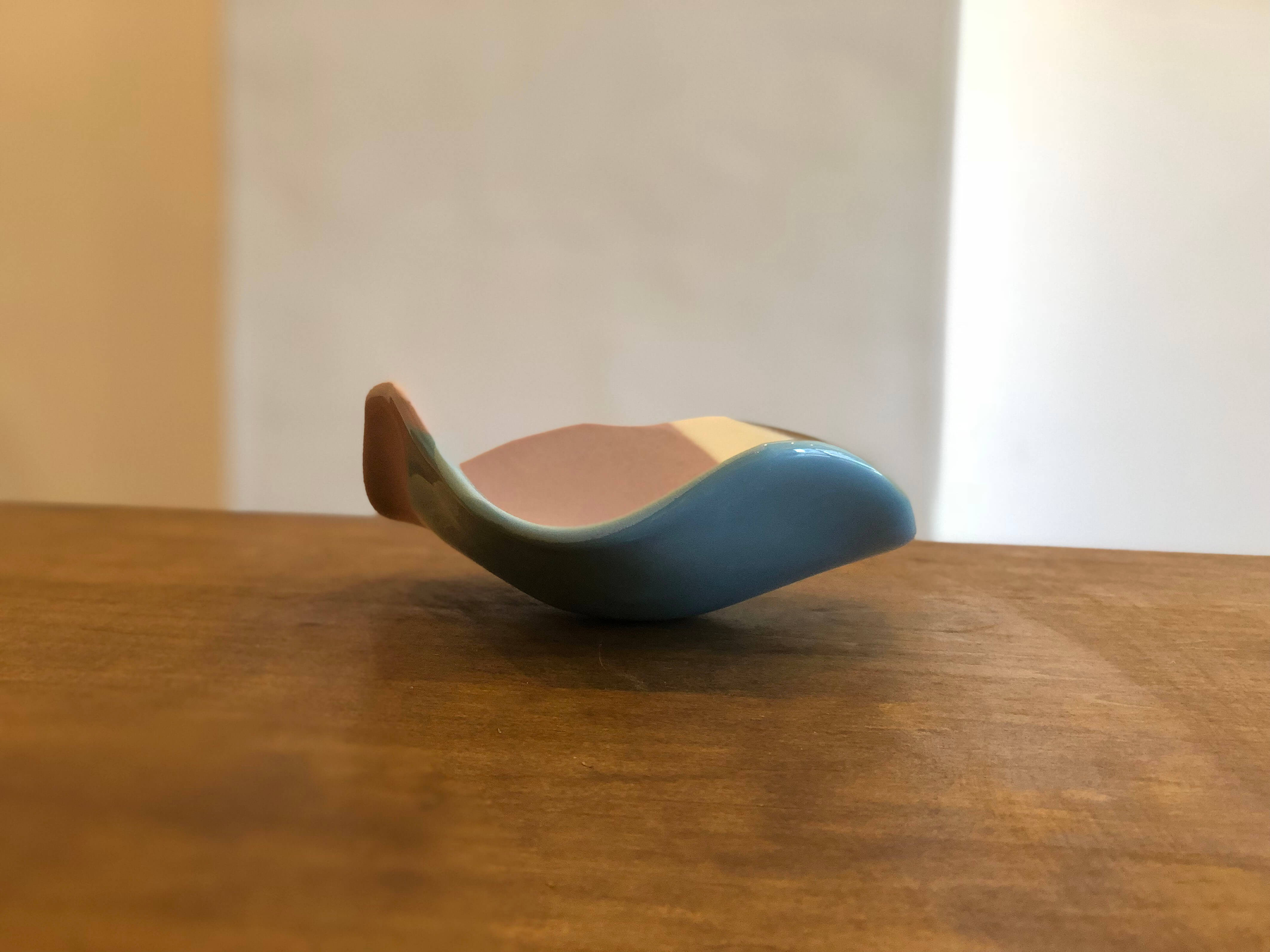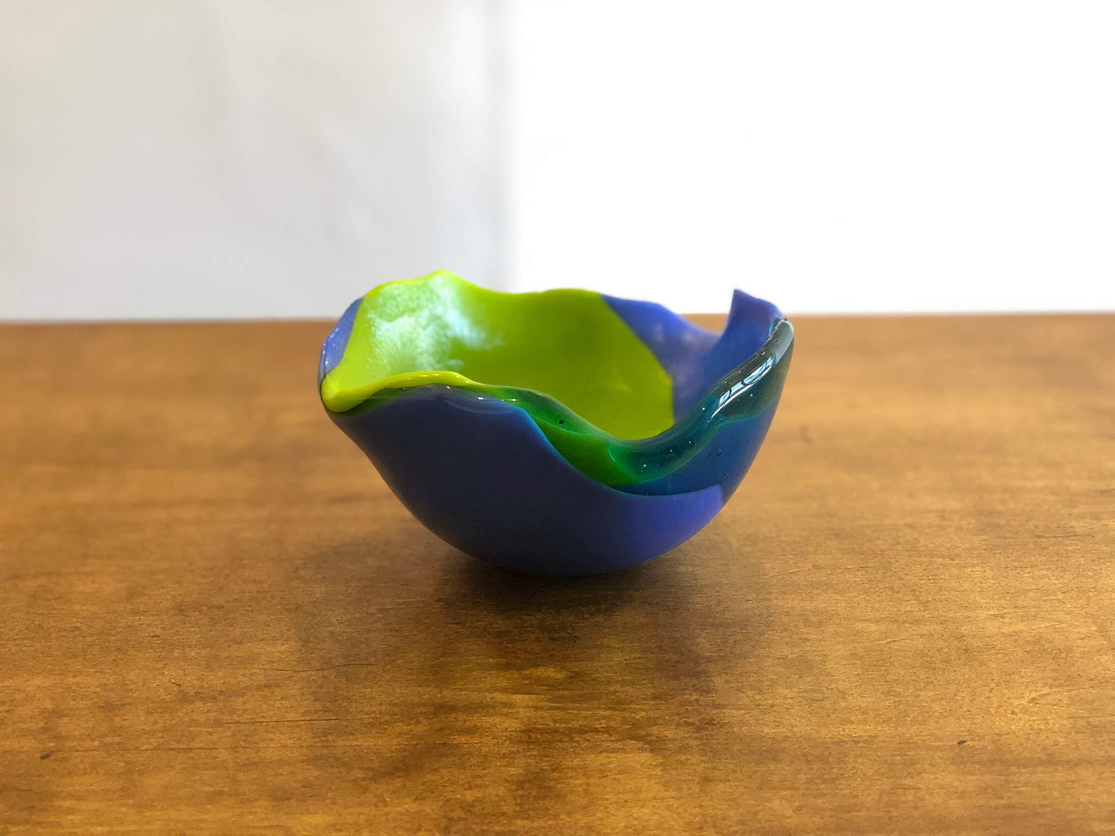 積層した板ガラスを自由なかたちに曲げたシリーズ。 果物やヨーグルト、シリアルなど普段の食卓で活躍します。