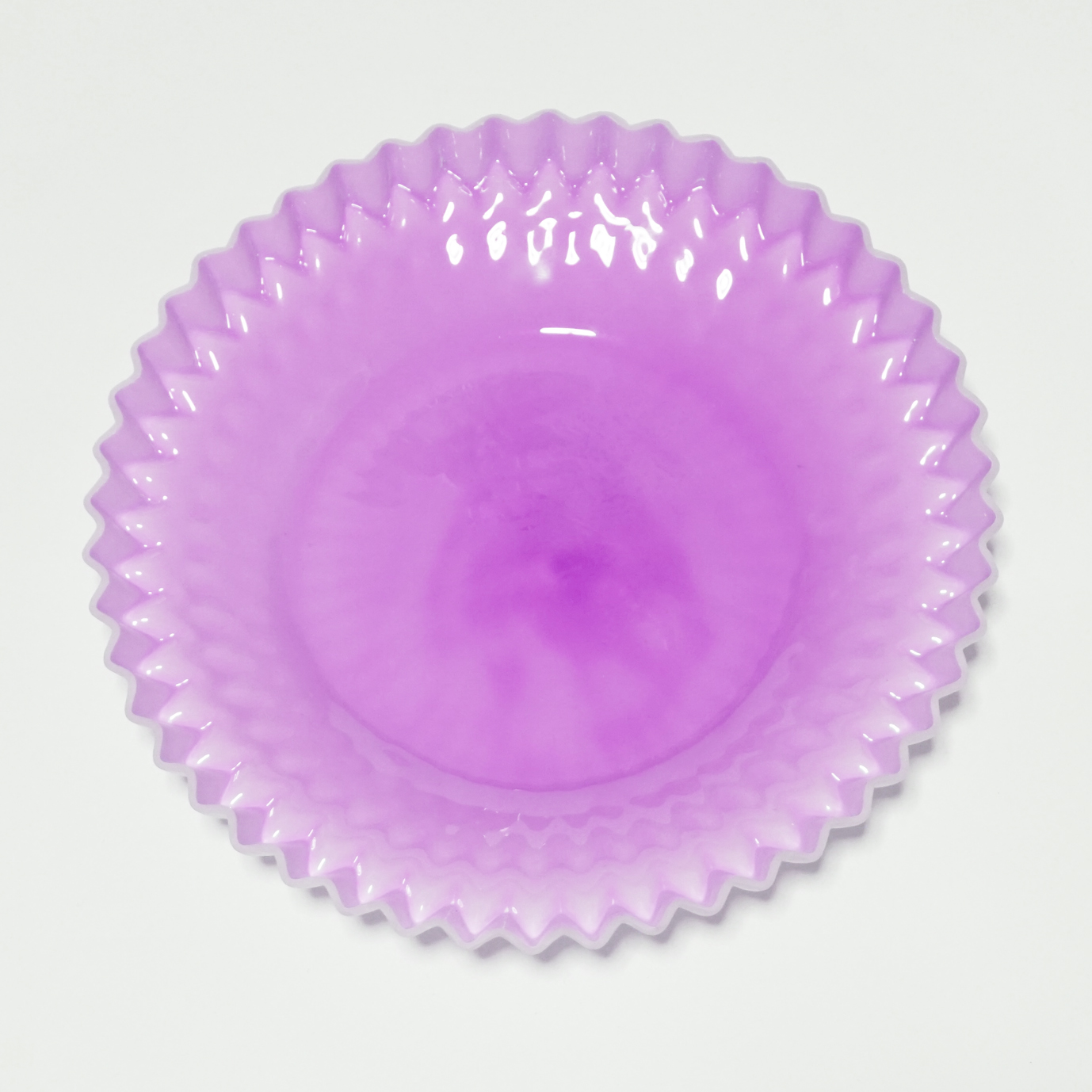 桃色の漆を塗った後指で叩いて模様を出しています。色々な四角を楽しんでほしいです。…