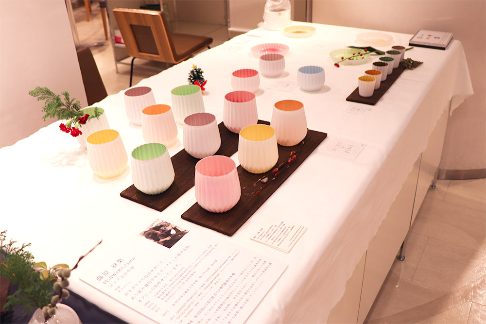 自身デンマーク滞在中に発見した表現方法を使い陶芸の様だが吹きガラスだからこそでき…