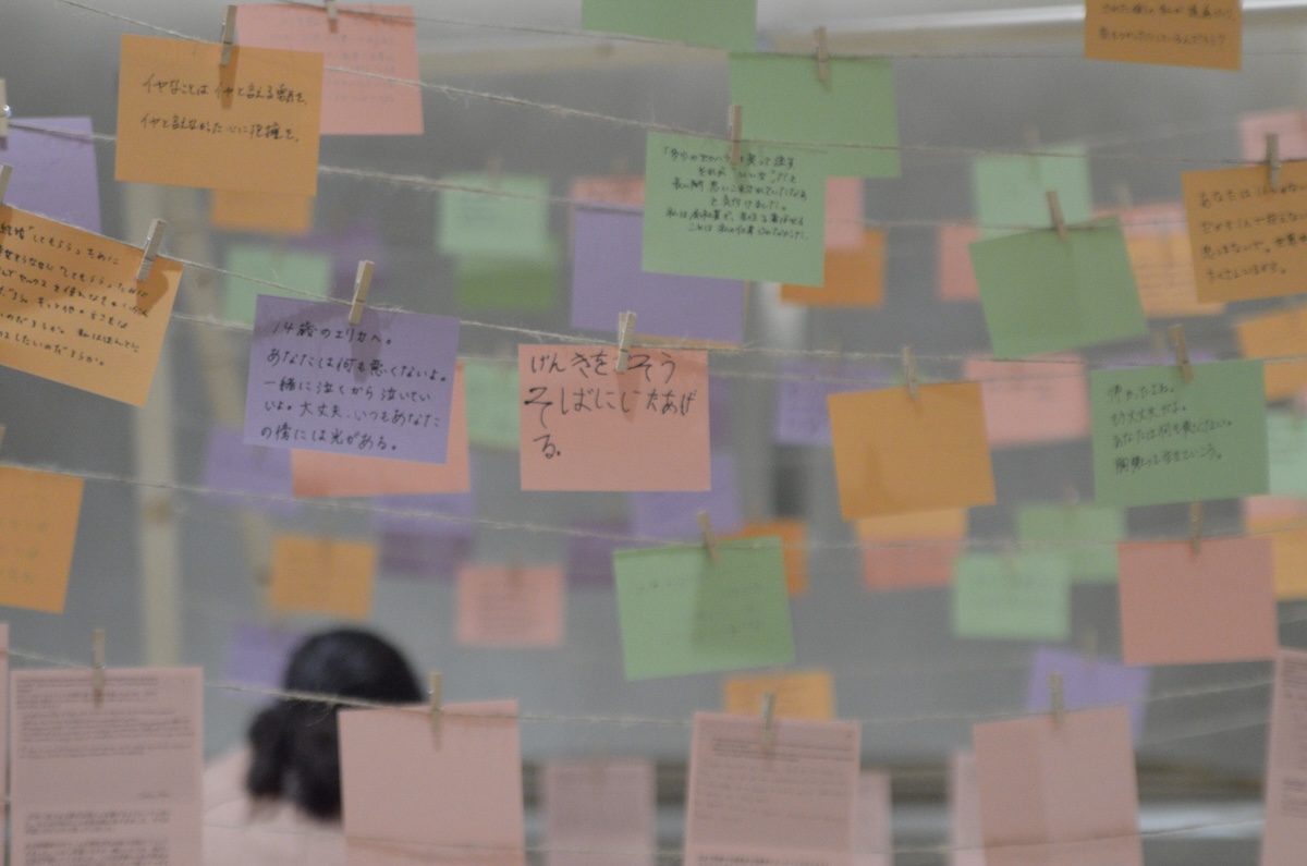 トリエンナーレや上智大学での《The Clothesline》とは異なり、性暴力を受けた被害者へのエンパワーメントをテーマとし、質問を一つだけ「セクハラ・性暴力を受けた自分(または家族や知人)にどんな言葉をかけたいですか?」に絞った。回答の一例=「あなたは一人じゃないよ。だから一人で抱えないで。悲しまないで。世界中に味方はたくさんいるから」。また、「わたしとあなたを愛すること」イベントとしてトークも開催され、参加者は100人を超えた。回答の数が少ない展示初旬においても来場者の多くに涙を流したり、深く感じ入って⻑い時間読んでいたりする姿がみられた。また、来場者や参加者への「展示による加害性」も浮き彫りになった。性暴力や性被害の記述がある場合、トラウマに触れたりPTSDやフラッシュバックを引き起こしたりしてしまう可能性があることに留意する必要があると感じられた。