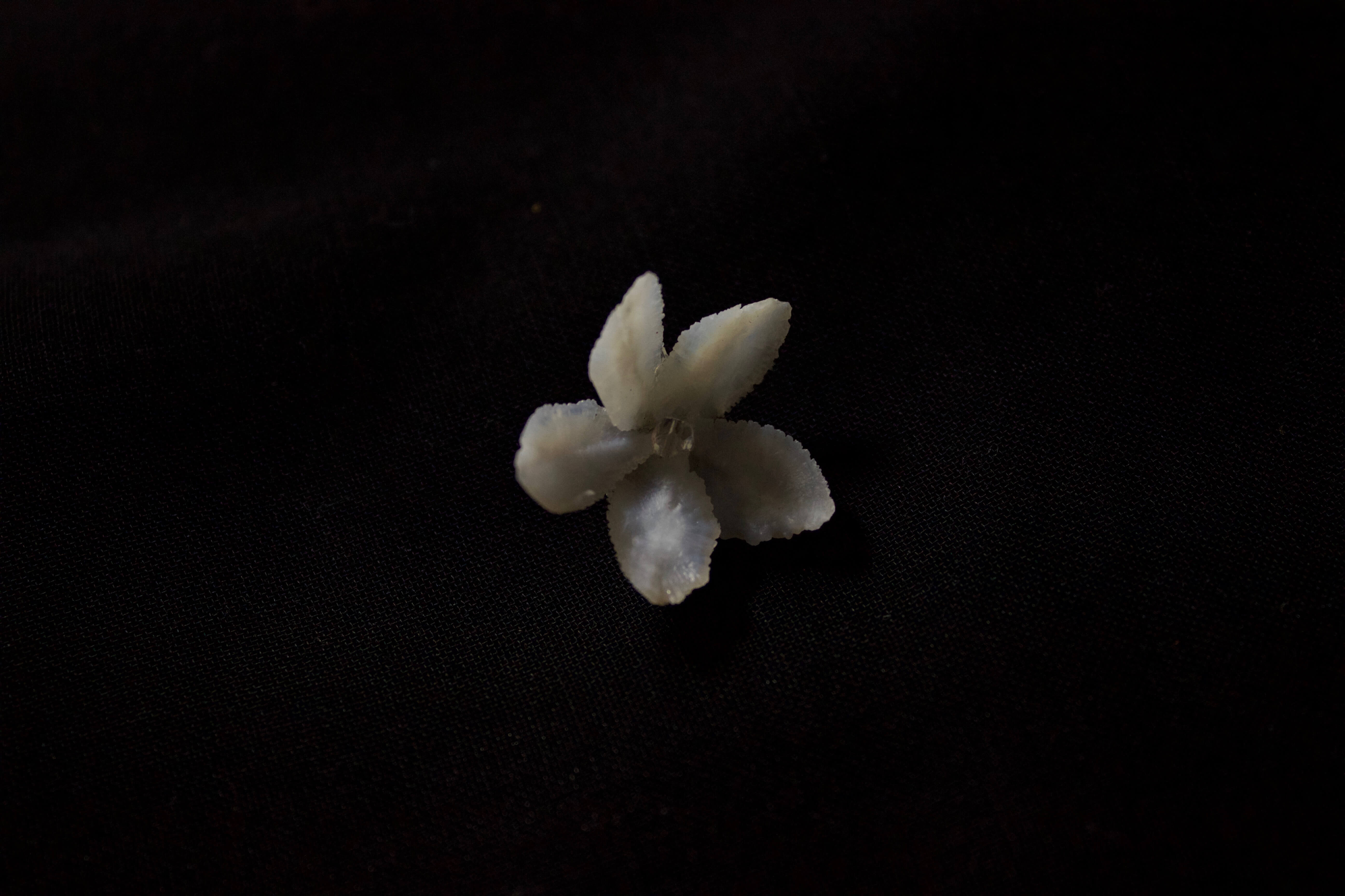 不安定さをテーマに、魚の耳石を使用したアクセサリー
